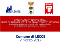 Il Comune di Lecce è la prossima tappa del Tour Appalti 2017 promosso da UNITEL in collaborazione con ASMEL