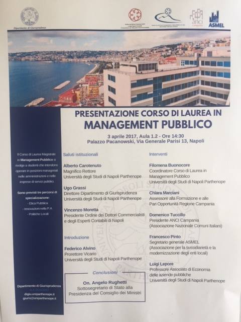 Lunedì 3 aprile ore 14.30, nella cornice di Palazzo Pacanowski, sede dell' Università degli Studi la Parthenope, si terrà il convegno su Management Pubblico.