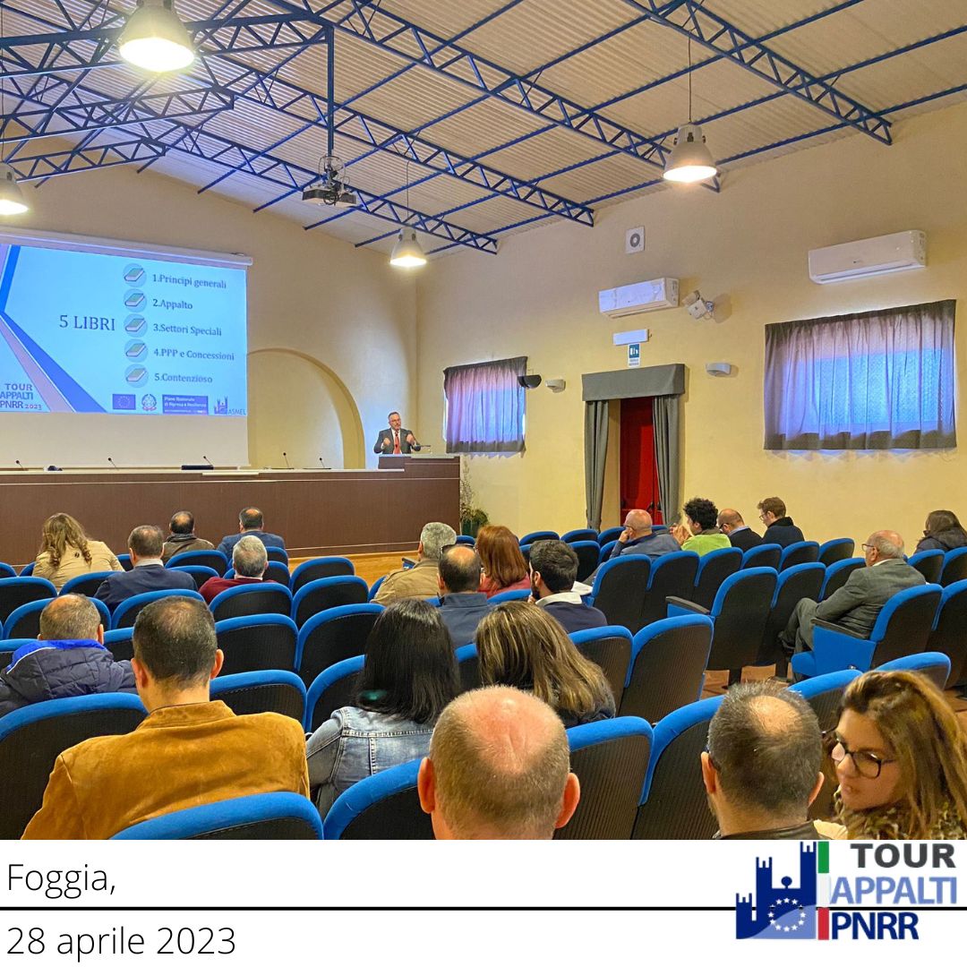 Dopo il successo in Molise, Sicilia, Toscana il TOUR APPALTI PNRR, l’appuntamento itinerante di Asmel, ha fatto tappa nei giorni scorsi a Foggia e ad Ardea. Sia in Puglia che nel Lazio, l'evento ha registrato una consistente partecipazione di Sindaci, Amministratori, Segretari e Tecnici dei Comuni che hanno avuto modo di confrontarsi con esperti sulle tematiche più scottanti alla vigilia della scadenza di numerosi interventi Pnrr, a cominciare dai finanziamenti sugli asili nido e dell’entrata in vigore del Nuovo codice.